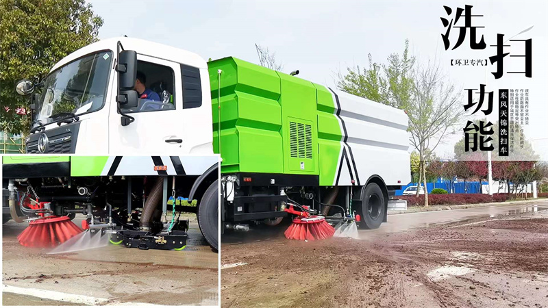 程力東風天錦洗掃車:該車具有作業不揚塵,洗掃車作業后路面不留塵土,持續作業時間長,作業性能穩定等突出特點,特別適用于城區干道的清洗保潔作業。