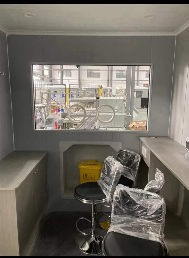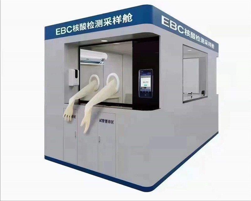 核酸檢測亭基本配置:正壓防護,H14過濾系統,高清語音對話系統,試管儲物柜,艙外垃圾箱,艙內擱物臺,單窗口(或雙窗口)檢測臺,采樣分體式橡膠手套,冷暖空調,紫外線消毒燈,LED節能照明燈,采樣人員凳子,福馬輪,觀察窗,核酸試劑傳遞裝置,試劑冷藏室,遮陽卷棚,可變模塊,叫號預約系統。