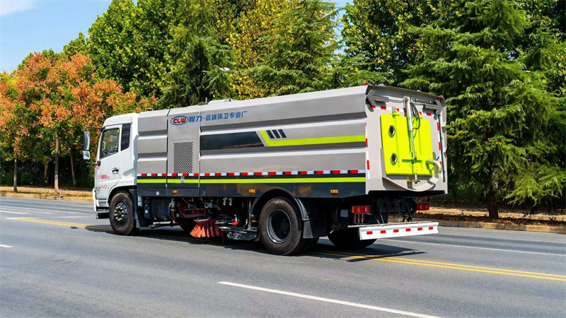 三、東風天錦單發洗掃車清水箱的容積加大(10水/7塵),綜合工作效率提高;