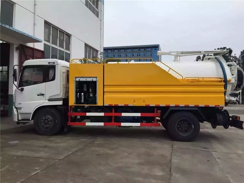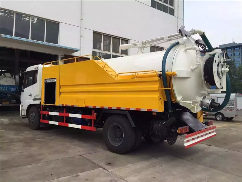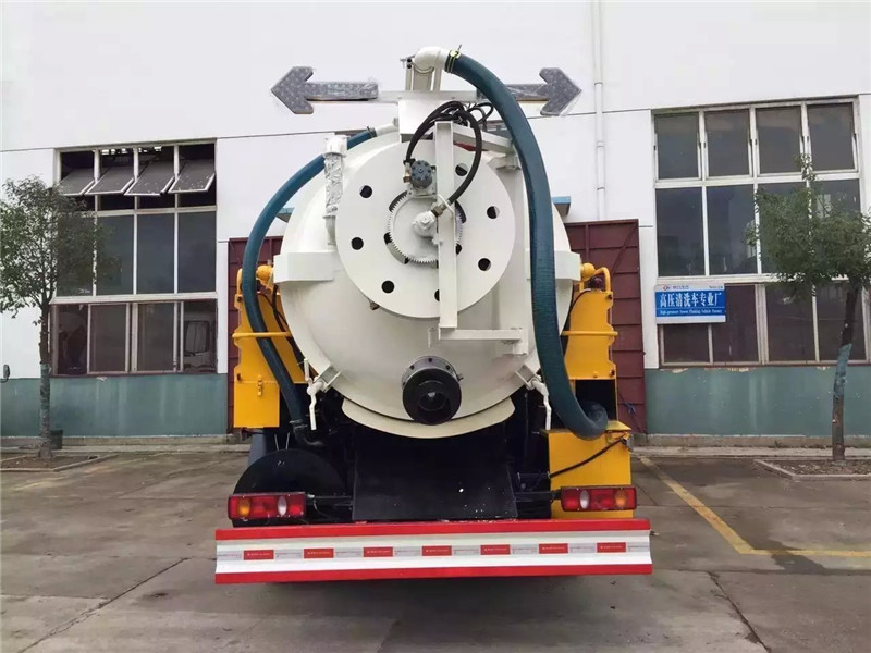 東風多利卡D7吸污車上裝罐體采用Q235國標6mm優質碳鋼鋼材制作,配置水循環泵,泵可自吸自排,真空度高,吸程遠;安裝防溢閥網裝置,預防抽滿罐了,防溢閥后面的濾網可以再過濾一次,相當于起到二次保護;一個防溢閥,加粗型視糞亮管,罐體可液壓舉升自卸,后蓋可液壓打開,一個自流口,一根8米的吸污管。