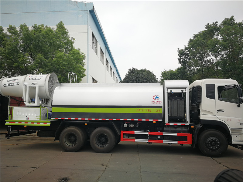 東風天錦抑塵車罐體滿載容積12立方,前噴,后灑,側噴,高炮,帶工作平臺,(所有功能可選裝自動控制)平臺加裝80米風筒式霧炮,配備柴油發電機組,霧炮可作為噴射農藥,抑塵功能。帶前部沖洗路面噴灑裝置,兩側面噴灑裝置,帶后部工作平臺、平臺上安裝綠化灑水炮(炮噴射形狀可調),可調直沖狀、大雨、中雨、毛毛雨,可連續調節,射程可達28米,垂直吸程≤7米,另加裝高效率車載式風送噴霧機,噴藥炮霧化效果好,可遠程噴霧。