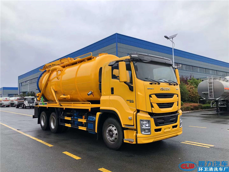 程力高端清洗吸污車新款上市:五十鈴巨咖清洗吸污車,20立方罐體容積,330流量高壓泵,意大利MORO-PM110水冷真空泵,安裝全遙控液壓旋轉吊臂,360°全回轉。