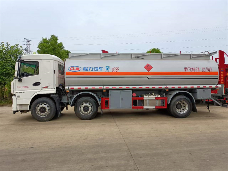 上裝配置:罐體有效容積:22.5方,采用Q235板材,罐體5個厚,封頭5.5個厚,隔板5個厚,單倉,罐頂兩個嘉隆歐標罐口, 1個新規智能關閉嘉隆海底閥,單倉帶一套嘉隆下裝油(卸油閥、油汽回收、防溢流探桿、防靜電卷盤),帶80-60專用油泵(可泵進泵出)后爬梯、帶手動護欄、工具箱、后保險杠、側防護欄為碳鋼一次性成型,按新標準制作,其他廠家標配,出罐體檢測報告。