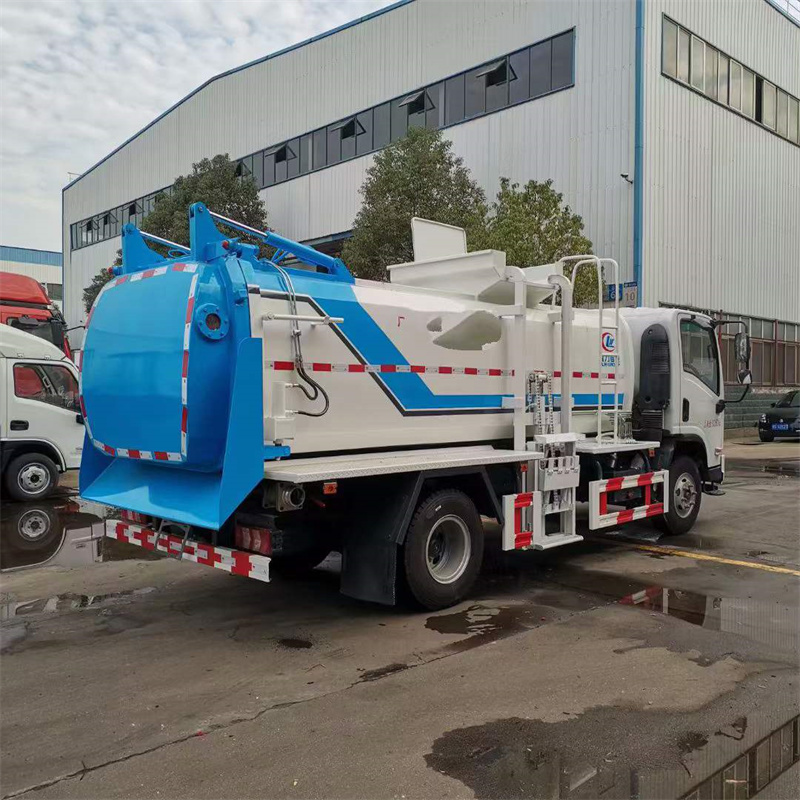 常規標配:罐體采用優質碳鋼制作,方形罐體,室外手動操作,采用揚州翔大多路閥,萬科油泵,國產液壓油缸。配備固液分離裝置:帶有全推推鏟將固體垃圾從罐體前部推壓到罐體尾部進行卸料,罐體底部配有過濾網對罐內垃圾進行初步的固體垃圾與液體垃圾分離;罐體右側裝有掛桶提升機構裝卸桶裝垃圾,可掛120L或240L標準塑料方形垃圾桶;后蓋采用液壓開啟、關閉。后蓋帶有密封橡膠墊防止車輛在行駛過程中出現泄漏。后蓋鎖緊裝置為液壓鎖緊。