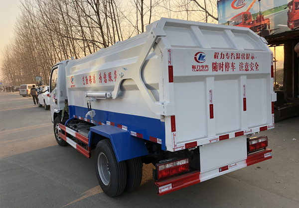 上裝配置:側面掛桶,容積約6立方,采用特種鋼板制作,箱體底板4mm,邊板3mm,箱體內部帶液壓推板,將垃圾壓實,側面帶掛桶擔升機,提升速度快,尾部帶3mm橡膠密封條,污水不滴漏,箱體油漆及噴字按用戶要求定制。