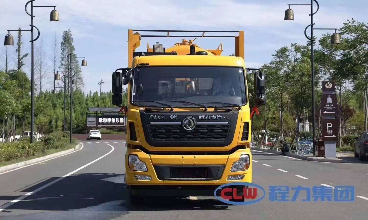 工作原理為通過吸污管道系統吸收下水道的積水后,車載絞盤勻速放置高壓管道,高壓沖洗管道工作時旋轉作用力使高壓沖洗管道進入人力所不能到達的下水道堵塞區域,進行高壓沖穿作業,通過吸污管道限度的減少水污對堵塞區域的覆蓋,達到的沖穿效果,起到疏通下水道的目的。