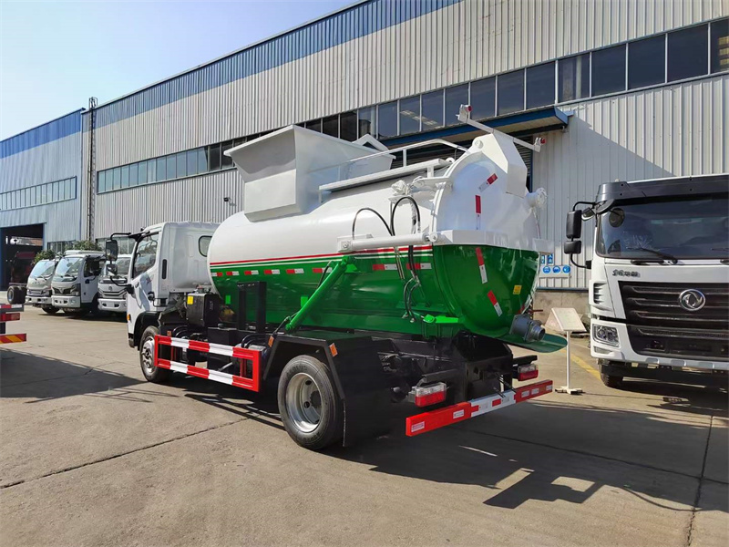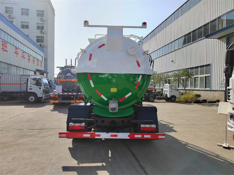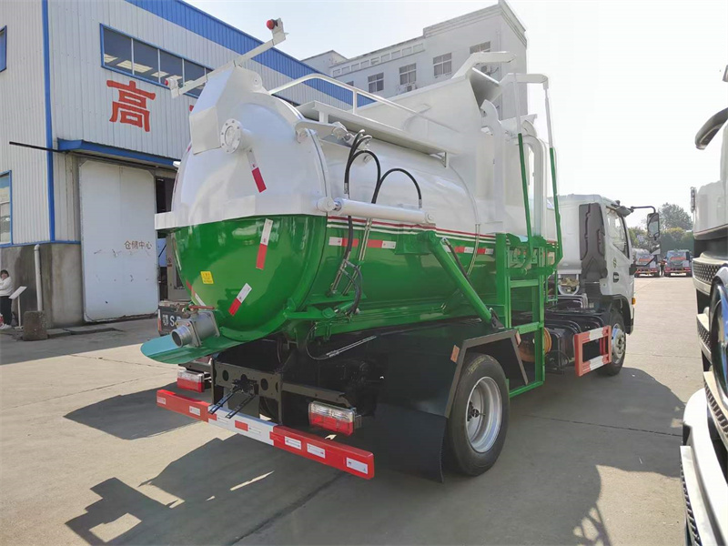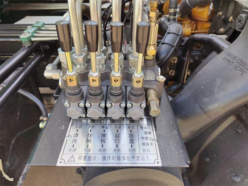 上裝配置:圓型罐體,采用武鋼優(yōu)質(zhì)碳鋼制作,罐體容積約7.5立方米,罐體4mm厚,后蓋液壓自動(dòng)開啟,尾部排污口為100mm球閥,拉桿式提升機(jī),加裝清洗裝置,帶駕駛室內(nèi)外電控操作系統(tǒng)。