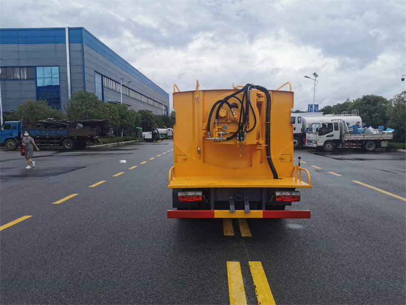上裝配置:1.水罐采用武鋼優(yōu)質(zhì)鋼板制作,壁厚4個厚,罐體中間合理設(shè)計防浪板,罐體上面設(shè)計檢查人孔,也當可加水孔用,帶水位量管帶洗手裝置,2.水箱進水口為球閥式消防栓(方便開關(guān),經(jīng)久耐用),帶消防接口,帶低水位排水口,3.高壓泵采用德國品孚170L型號,24兆帕壓力,安裝自主研發(fā)大型過濾器(防止雜質(zhì)進泵,過濾器免拆洗),帶氣吹水功能(冬季可把高壓泵,高壓管的水吹干凈,防止凍壞),4.后高壓卷盤液壓放管收管,帶淋管功能(高壓管作業(yè)后,往回收時,可以沖洗高壓管),5.操作系統(tǒng)排列整齊,均有操作說明及注意事項,液壓管路重要部分采用高強度鋼管,堅固耐用,6.帶2個工具箱,帶卷簾門(方便高壓泵保養(yǎng)檢修)7車輛采用鍍鋅防護網(wǎng),花紋防滑護欄(美觀耐用).