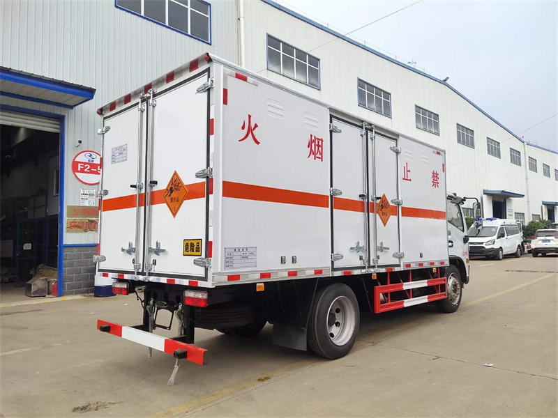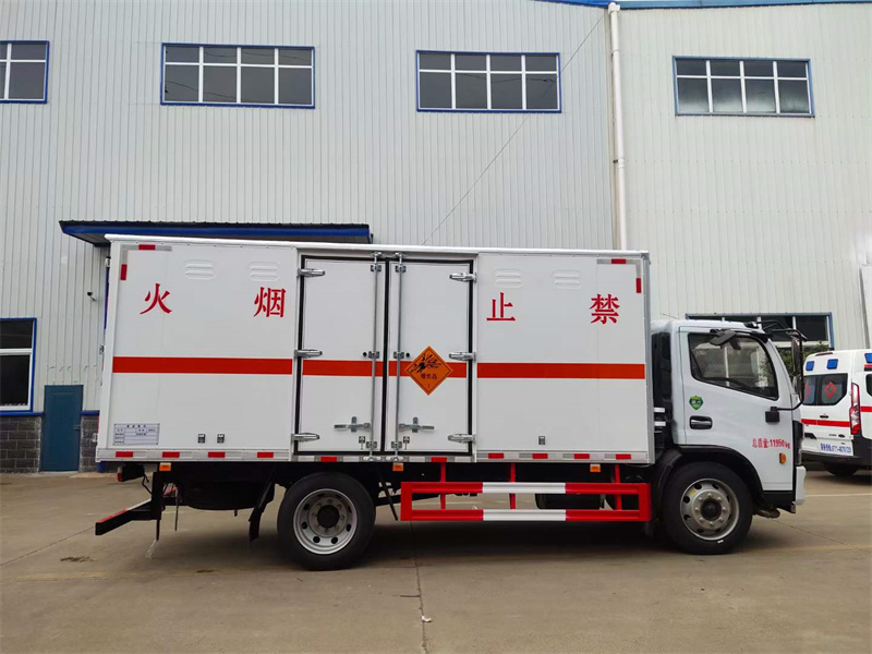 廂體配置:嚴格按照公告尺寸制作,外板采用1mm厚冷軋板有一次性成型的百葉窗,內飾為導電性能良好的鋁板有透氣孔,內襯為矩形管骨架牢靠穩定,內部填充為透氣防潮阻燃的擠塑板,四種材料經現代工藝復合而成,廂體外部上下鋁合金型材包邊,底板和車廂前下部鋪橡膠皮,后門雙開,右側中部雙開門(按照公告靠前),車輛外部有靜電帶、滅火器、防火罩,車廂內安裝煙霧報警器和門防盜報警器,嚴格按照國家危險品相關法規張貼。