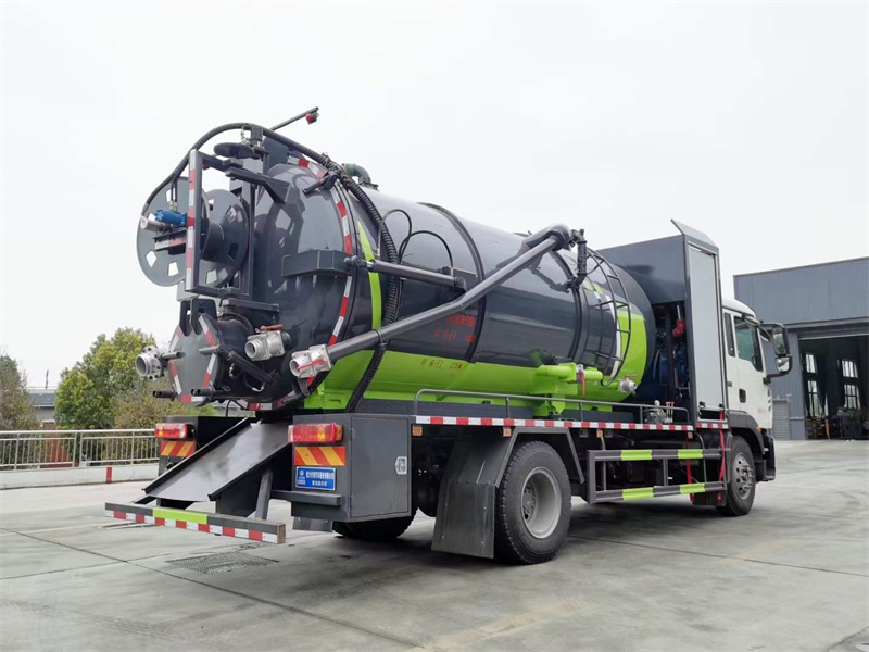 管道清洗吸污車體罐?尺寸:4700×1950, 水污?罐長/2610mm), 清水罐長/2090mm,  8mm碳鋼板材,清水箱兩側一邊一個消栓防?進水口,其?余為吸污,兩倉球閥互通。兩倉中間用封頭8mm,高?壓泵接氣吹水,通潔250流?量高壓?清洗泵, 100米25高壓管,高?壓泵凈水管加粗,卷盤后裝封頭180旋度?轉,卷盤液壓帶旋轉。安裝30水環泵帶375副發馬力,吸污管道帶排?氣閥。后封頭液壓打開,面里?用鋼方?加十字?固。后封頭上安裝一個600泥蓋放污水可液?壓開啟,150不銹鋼圓球閥1個,100不銹鋼球閥1個,罐體尾部帶箭頭燈,帶視?糞管1個,工具箱1個,帶8米吸污管, 其它按標準配置。