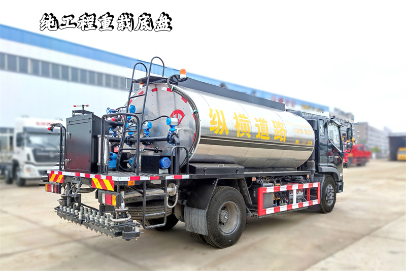 10.瀝青灑布車灑布寬度:1.2米~4.5米,精確三重疊灑,灑布量0.2-2kg/ m2,28套不銹鋼全電控氣缸及純銅噴嘴,灑布寬度由電腦精確控制