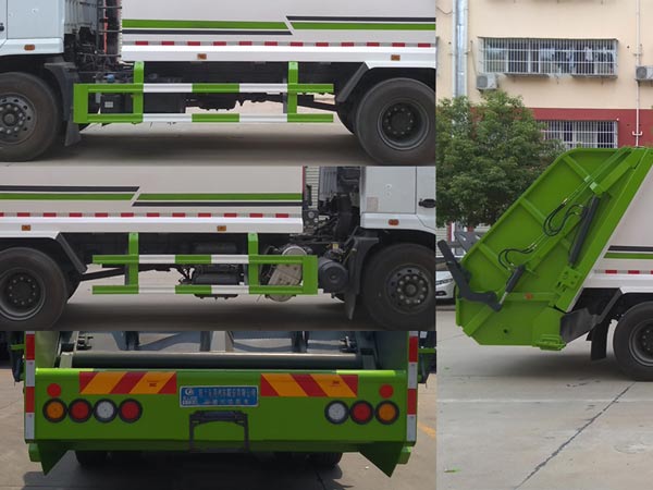 此車為城市垃圾轉運專用車輛,專用裝置為垃圾斗.整車長度/前懸/軸距/后懸的對應關系為(mm):10080/1400/5800/2450,9580/1400/5300/2450,9280/1400/5000/2450,8980/1400/4700/2450,8780/1400/4500/2450,8480/1400/4200/2450,8230/1400/3950/2450,8080/1400/3800/2450,10080/1430/5800/2420,9580/1430/5300/2420,9280/1430/5000/2420,8980/1430/4700/2420,8780/1430/4500/2420,8480/1430/4200/2420,8230/1430/3950/2420,8080/1430/3800/2420,此車后伸為430mm;側防護裝置采用Q235A材質,采用焊接連接,后下部防護為專用裝置,離地面高度350mm。ABS型號/生產廠家:3631010-C2000/東科克諾爾商用車制動系統(十堰)有限公司,ABS 8/東科克諾爾商用車制動系統(十堰)有限公司, 4460046450/威伯科汽車控制系統(中國)有限公司.隨底盤選裝駕駛室.此車僅用發動機型號為D4.5NS6B190,D6.7NS6B230,DDi50E190-60,B6.2NS6B210,對應油耗值為(L/100km):24.4,23.7,23.9,23.8.