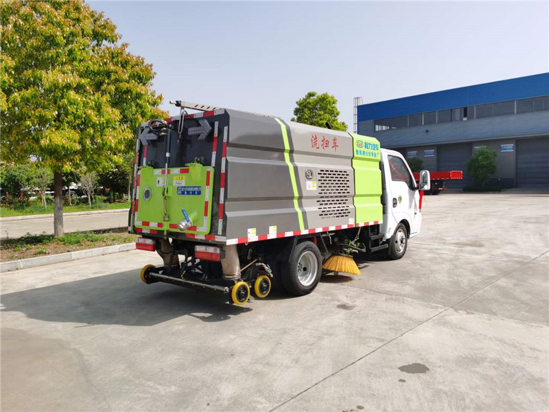 程力洗掃車廠家直接送貨上門,途逸洗掃車使用不銹鋼水箱1.5方、不銹鋼垃圾箱1.8方,配備玉柴60馬力副發(fā)動機,中置兩掃盤,后置吸盤,廈門南超自動離合器,高品質(zhì)免維護離心風(fēng)機,CAN電控系統(tǒng),前掃避讓功能,隨車配備雙向操作按鈕,高壓槍管道配有1.5米旋轉(zhuǎn)擺臂,清水箱加裝低水位報警系統(tǒng),垃圾箱內(nèi)部加裝污水箱自溢系統(tǒng)。