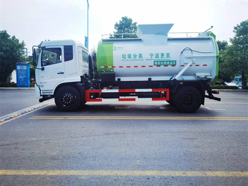 程力專汽東風天錦12方餐廚垃圾車,可固液分離。東風天錦4700軸距,康明斯230發動機,容積約12立方,罐體采用國標6mm碳鋼板材制作,罐體右側配拉桿式雙油缸掛捅提升機構,推鏟卸料帶固液分離,可掛載120L/240L國標方形垃圾桶,后門采用液壓開啟、液壓關閉鎖緊、防失誤操作、尾部配100排污閥。