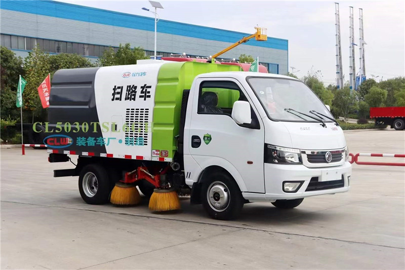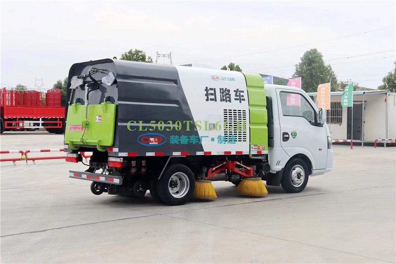 該款藍牌掃路車整車型號為CL5030TSL6GM型程力牌掃路車主要配置:柳汽112馬力,帶掃盤 4 把,云內 57馬力 副發動機,力沃馬達,施耐德控制開關,海普瑞斯電磁閥組, 免維護自動分離式離合器,免維護風機,1垃圾箱 1.5m3,水箱 0.5m3,手動泵應急系統。掃盤有防碰撞、自動避讓功能,可根據地面泥沙嚴重程度及行車速度選擇掃盤的清掃方式;吸嘴為后置浮動式,可自動調節適應地面凹凸不平的狀況;可調節的霧狀噴灑水壓塵,在節水的同時消除二次污染。